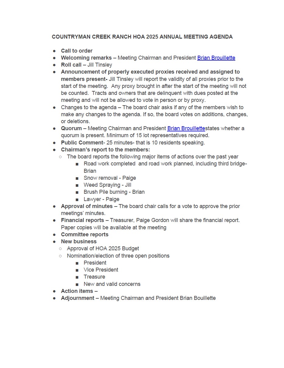 CCR HOA Annual Meeting Minutes, May 31st, 2025